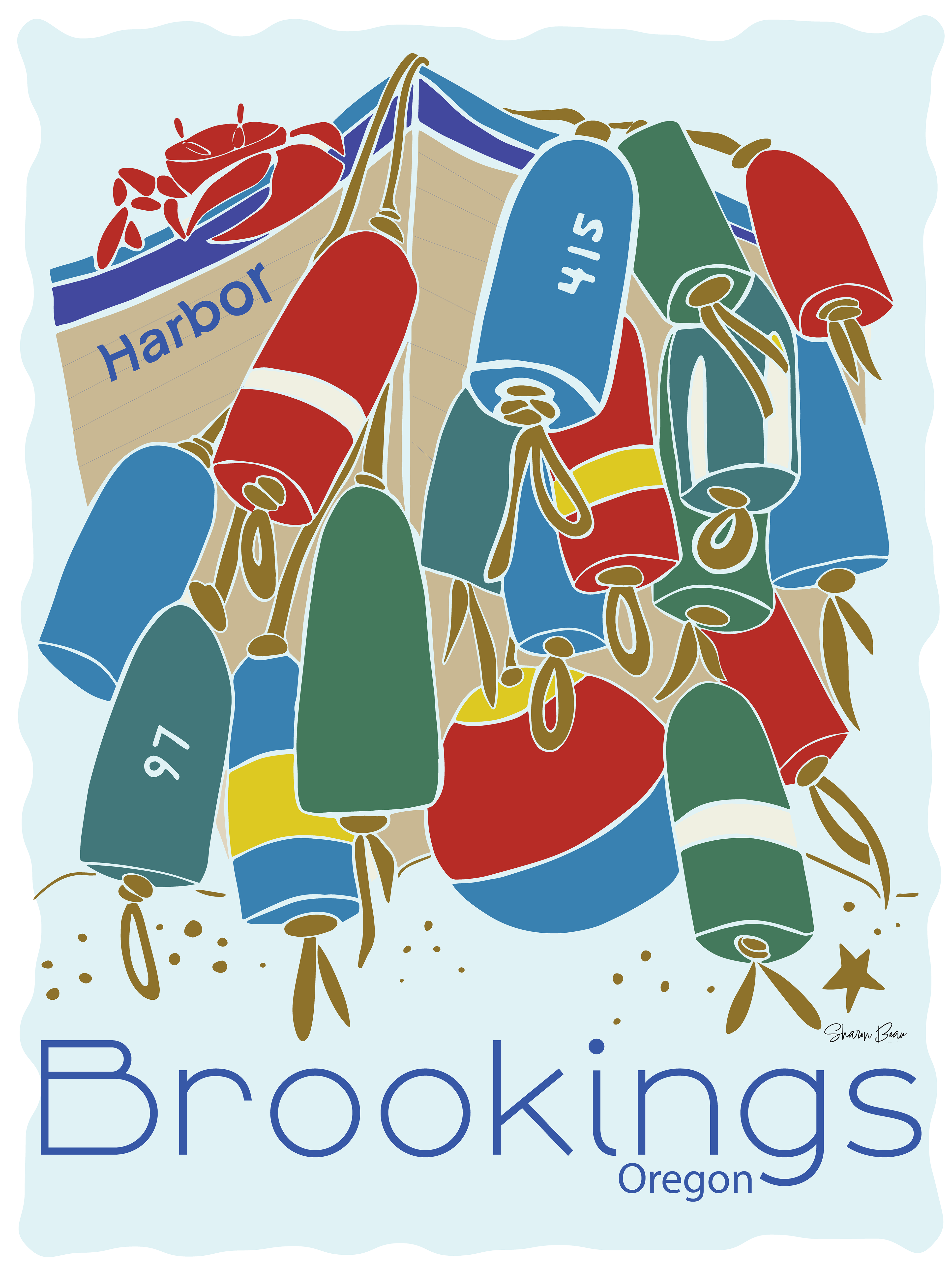 Discover a vibrant ocean life of crabs and buoys found on a harbor crab boat featuring nautical patterns and illustrations in bright hues. Perfect for beach-themed decor and clothing.